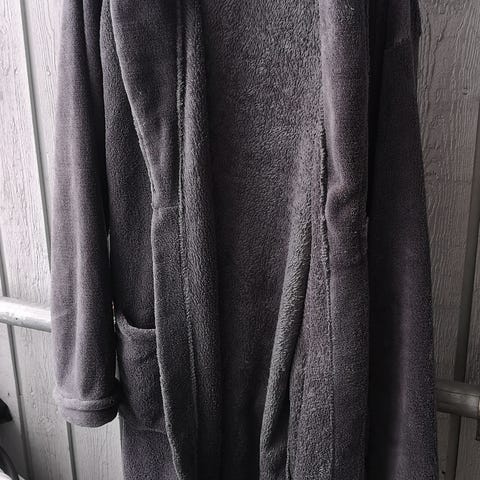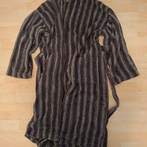 raidallinen kylpytakki, koko XL. Miehille soveltuva malli, jossa vyötärösolki. Valmistettu mukavasta materiaalista, sopii käytettäväksi kylpy- ja rentoutumishetkiin.