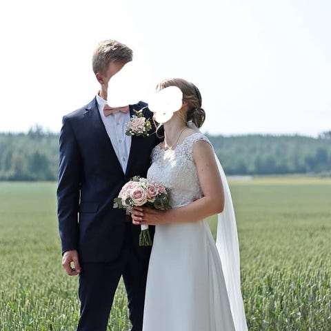Virheetömässä kunnossa oleva, kerran käytetty todella kaunis hääpuku.