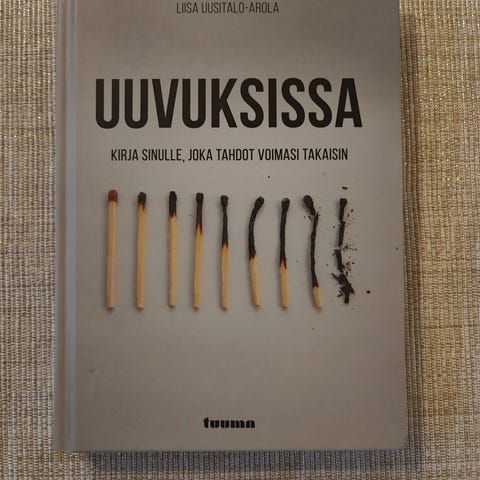 Uuvuksissa: "Puurrat ja pinnistät. Jatkat tekemistä siinä toivossa, että jossain vaiheessa saisit hellittää. Jos ei jouluna niin kesällä viimeistään. Pusket eteenpäin kuin höyryveturi, kunnes tulee päivä, jolloin huomaat, ettei mistään itsesi kannustamisesta tai motivoinnista enää ole hyötyä. Kone ei käynnisty. Mikään ei innosta. Voimasi ovat lopussa.