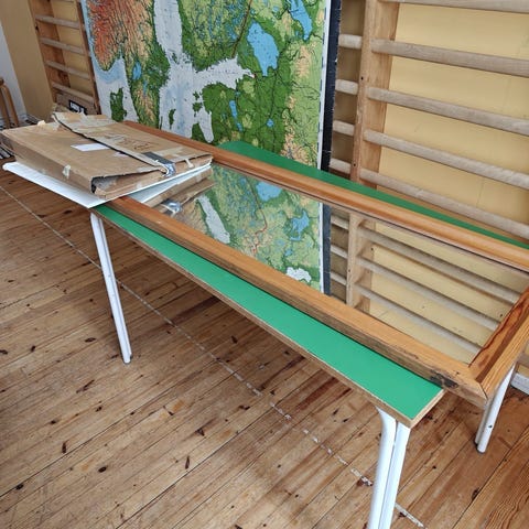 Peili, pöytä ja lampetit