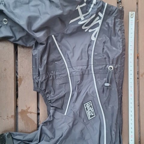 Hyväkuntoinen Hurtta -kurapuku ja tarralliset tossut pienelle koiralle. Yhteishintaan
