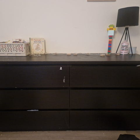 Jyskin lipasto, kannen pinnassa kuvan vaurio, muuten ok.