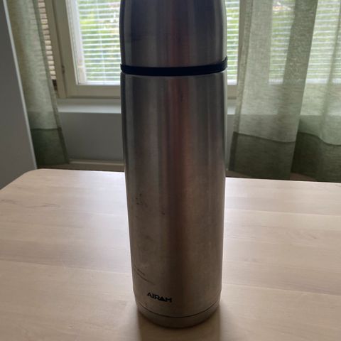 Käyttämätön terästermos mukilla ja pikakorkilla, Länsi-Suomen OP