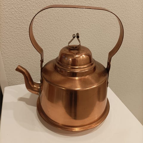 Vanha iso alumiininen kahvipannu. Kahvipannun tilavuus on 5 litraa.