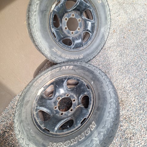 Renkaat vanteilla, koko 225/70 R16. Renkaat ovat käytetyt ja kiinnitetty AEZ-merkkisille alumiinivanteille. Renkaiden kulutuspinta näkyy kuvissa.