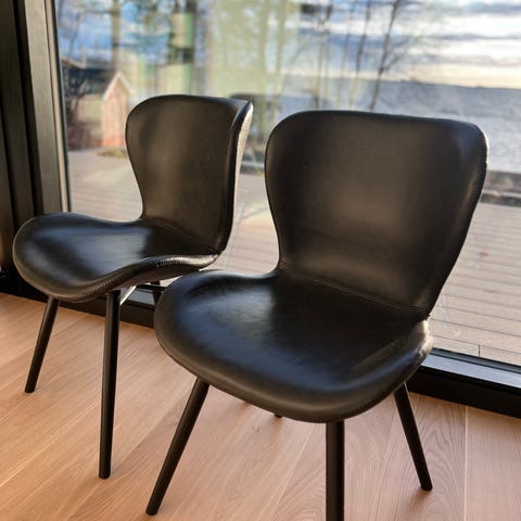 Ostaisin sirot, matalalla selkänojalla olevat ruokapöydän tuolit. Kuva omista entisistä, joiden kaltaisia jäin kaipaamaan.