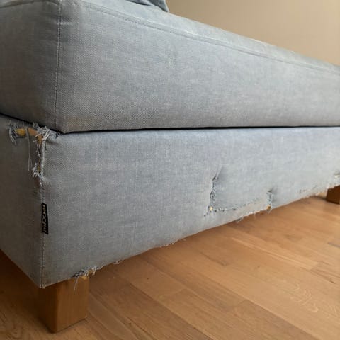 Annetaan Ikean vuodesohva, joka ollut koirataloudessa. Koira purrut pentuna kulmiin reiät kankaaseen, mutta rungoltaan ehjä sohva. Ei toimitusta