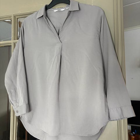 S harmaa Uniqlo bleiseri. Nyppyyntynyt. Vuoriton. Jersey, joustava.
