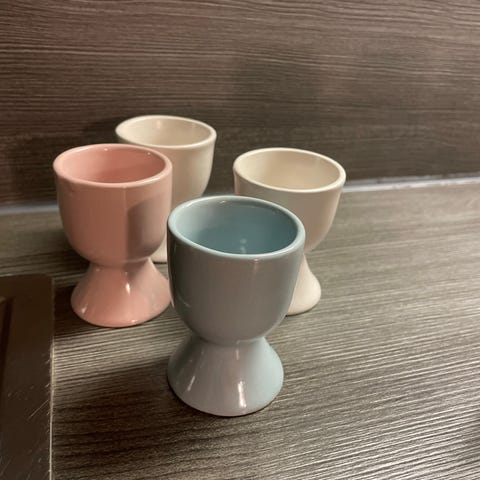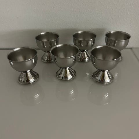 munakupit, 6 kappaletta kukkakuviolla. Munakupit ovat posliinia ja niissä on värikkäät kukkakuvioinnit. Sopivat kananmunien tarjoiluun.