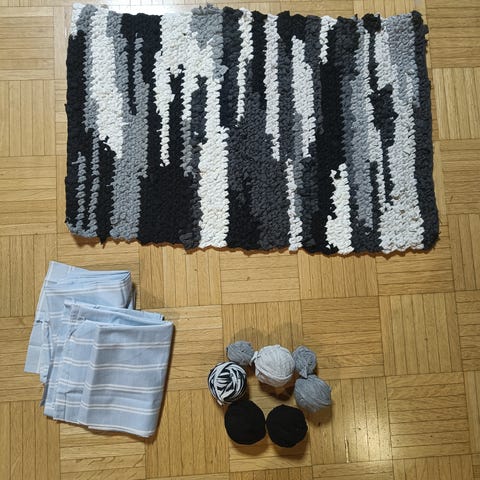 Annetaan nalle kotistetyynyn päällinen ja lankoja. Sekalaisia lankoja askarteluun. Vain nouto.