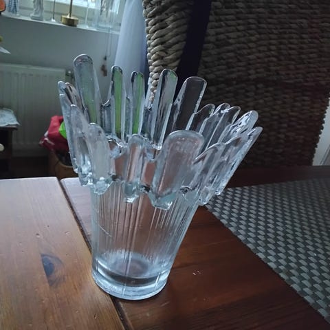 Maljakossa on pystysuorat uritukset, jotka luovat elegantin ja klassisen ilmeen. Suuaukon halkaisija noin 11,5 cm. Painava, tukeva.