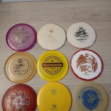 Nyt myynnissä suuri määrä frisbeegolf kiekkoja ja prodigyn bägi (bägistä hajonnut yksi kantokahva). Setti on mahdollista ostaa kokonaisena mutta myös yksittäisiä kiekkoja on mahdollista ostaa.