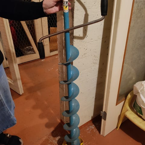 KJmora jääkaira sinisellä värillä ja teräksisellä poraterällä. Käsikäyttöinen malli, jossa ergonominen kahva. Parikertaa käytetty. Terän halkaisija 150 mm.