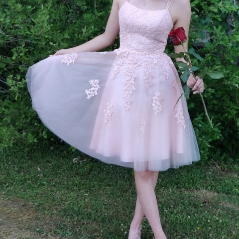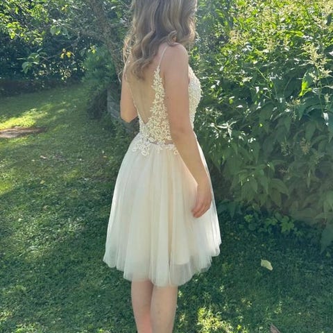 Kerran käytetty rippimekko. Käytön jälkeen käytetty pesulassa ja säilytetty pukupussissa.