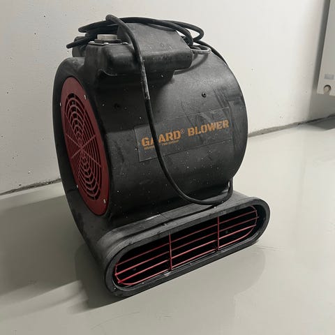 Tehokas voimavirtapuhallin pyörillä.