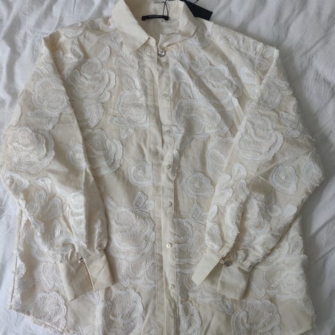 Hyväkuntoinen, valkoinen, koon 36 tunika. Pituus 85. Kai-kai 60. Yläosassa rypytys. Materiaalilappua ei ole, mutta puuvillaa.