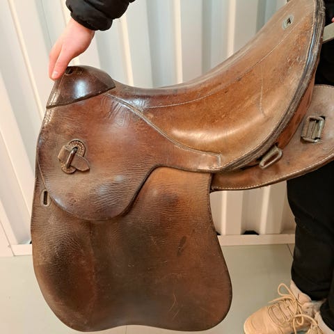 Satula, vanha ratsuväen. Vuosiluku 1912, numeroitu ja taitaa olla nimikoitukin