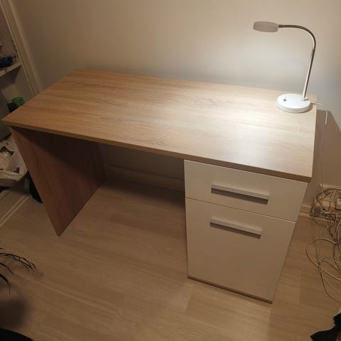 Myynnissä kuvan mukainen hyvässä kunnossa työpöytä ja työtuoli, pöytä purettu osiin.