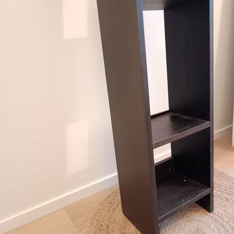 Hyllyjen tasot maalattu itse nykyisen värisiksi. Tasojen pohjissa vielä alkuperäinen sävy (näkyy toisessa kuvassa).