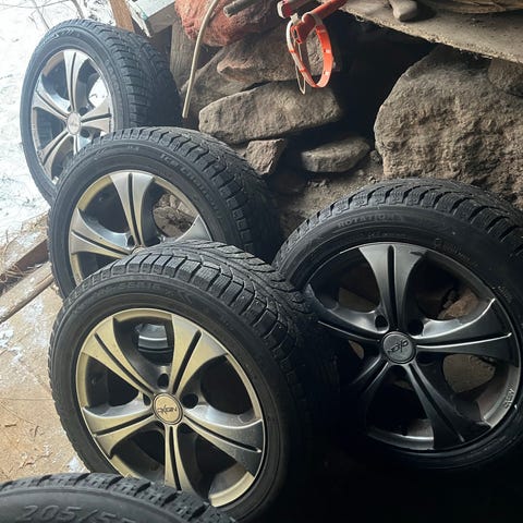 Suoraan käytöstä kuvien nastarenkaat alkuperäisillä Skodan aluvanteilla. Pintaa on hyvin jäljellä kaikissa renkaissa, eikä juurikaan nastoja ole rapissut, vantessa on jonkun verran kauneusvirheitä, mut kyllä noilla vielä yhden talven ajaa.