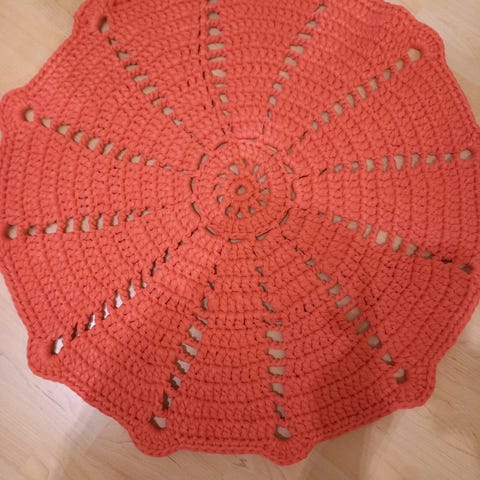 Virkattu viininpunainen pitsimatto.Halkaisija1.15cm