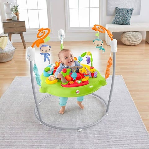 Tämä on Fisher-Price Animal Wonders Jumperoo-vauvakeinu.