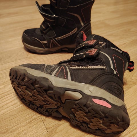 Använda bara ett par gånger under förra vintern. Dotterns fötter växte mycket under sommaren. Vaderade stövlar som håller fötterna varma och torra.