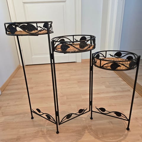 Metallinen kukkakoriste, jossa on yksinkertainen ja tyylikäs muotoilu. Koriste sopii sisustukseen ja pöytäkoristeeksi.