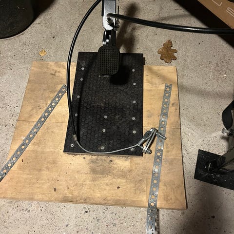Hoyla opetuspoljinsarja ja kiinnitysrauta jolla poljinsetin saa kiinni penkin pulttiin. Hinta motonetissa 100+15 €