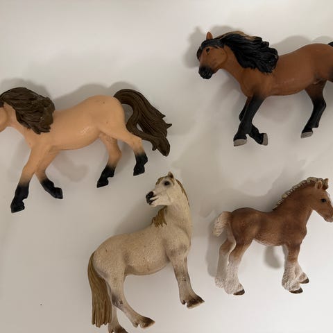 Lauma valkoisia schleich heppoja. Uusimmassa taitaa olla eniten jälkiä muutamassa hädin tuskin käytön jälkiä vaikka leikeissä olleet
