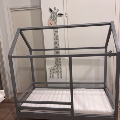 Sänky on purettuna, säilytetty sisällä lämpimässä. Koko on 70x140cm.