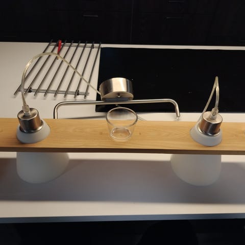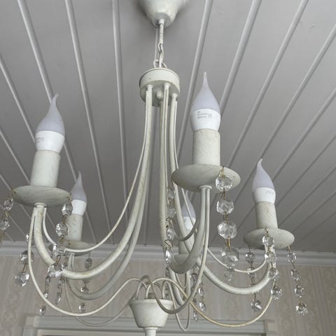 Myydään kaunis kattovalaisin vaikkapa pöydän tai kukkatelineen yläpuolelle. Myös ikkunavalona oikein sopiva. Lasinen varjostin ja antiikkimetallia ketju sekä kattokupu. Varjostimen halkaisija 12 cm ja korkeus 23 cm. Kokonaispituus katosta noin 66cm.