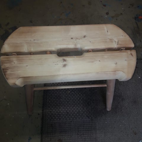 Jo elämää nähnyt tukeva jakkara vaikka remppahommiin ei ihan priima, mutta tuunaamalla vaikka mihin käyttöön. Istuimen muovipäällyste haurastunut, mutta alla tukevaa vaneria. Päällystä vaikka Marimekolla.