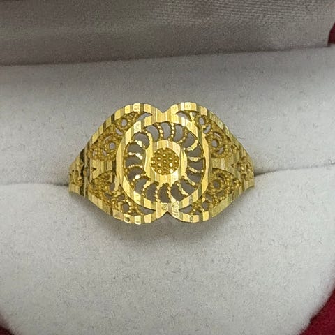 Kuvioitu sormus, koko 17½, 333, leveys 9mm Paino noin 2g