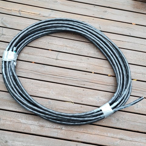 Myydään kuvien kieppi MMJ asennuskaapelia, 5x6mm2 johtimilla. Kaapelilla pituutta 11,15m