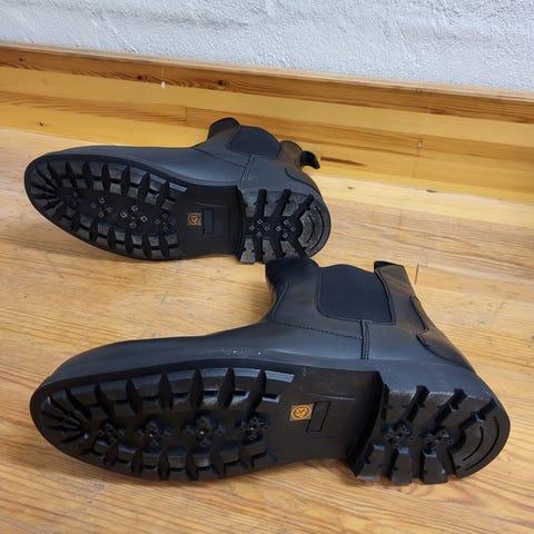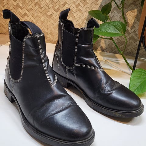 Mustat nahkaiset ratsastuskengät vetoketju takana.