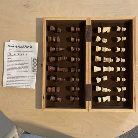 Puinen pelialusta Shakki ja Tammi peliin.koko 285×285mm paksuus 15mm.ei pelinappuloita mukana.