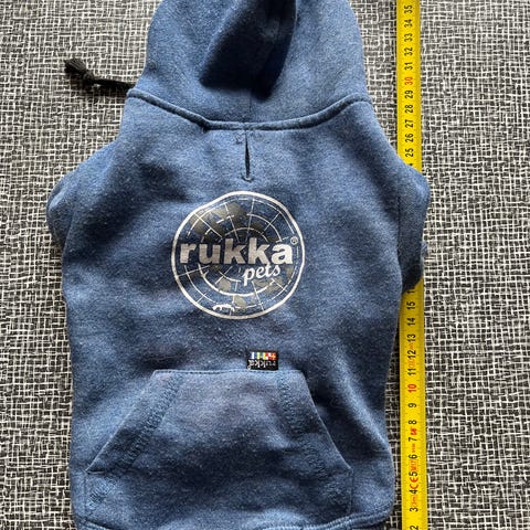 Vain sovitettu ja liian kapeaksi todettu turkoosi koiran huppari. Koko XL/70cm.