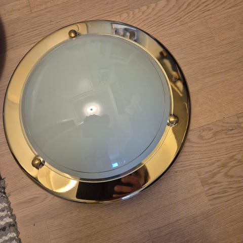 Metallinen korkeus 42, leveys 40, hopeanvärinen. Varjostin on valmistettu metallilangasta ja siinä on sähköjohto sekä kiinnitysmekanismi. Sopii erilaisiin sisustusratkaisuihin valaisimena. Kunto muutoin hyvä, viimeisessä kuvassa valaisimen rikkoontunut paikka. Ei vaikuta toimivuuteen. Siinä kohtaa pidetty rusettia. Suuri lamppu kuuluu mukaan.