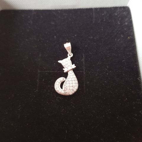 Hopeinen Kissariipus, Valmistajan leimalla. B - 9. Kolmella leimalla. Ketjunpituus - 42,5 cm. Kissan koko/halkaisija - 16 mm.