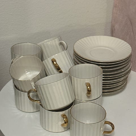 6kpl kuppi + lautanen, yksi lautasista vanhemmalla tehtaan leimalla.