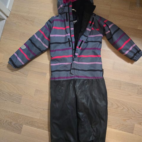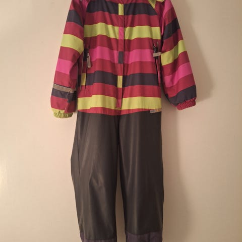 Lassietec suprafill haalari (vuorellinen, kevyttoppa), koko 110, Hyvin käytetty. Muutoin muilta osin hyväkuntoinen paitsi haarassa ja sisälahkeen saumassa kumipinnan kulumaa ns. polvien kohdalla ja sauman kangas alkanut kulumaan ts. alkavia pieniä reikiä niillä kohdin. Pepussa pyöräkumilla paikattu palkeenkieli, joka on pysynyt hyvin.