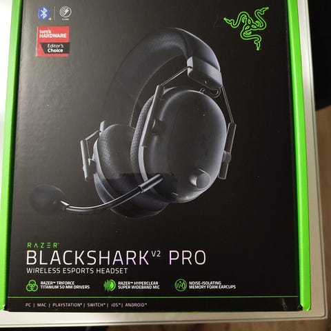 Razer BlackShark V3 Pro langaton pelikuuloke, vihreä väri, suunniteltu pelaajille. Kuulokkeet tarjoavat langattoman yhteyden ja laadukkaan äänentoiston. Mukana mikrofoni ja pehmustetut korvakupit mukavuutta varten.