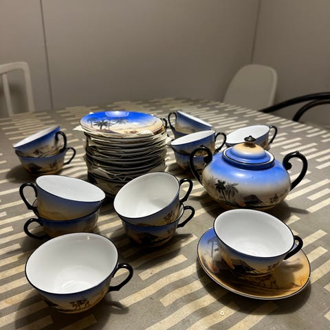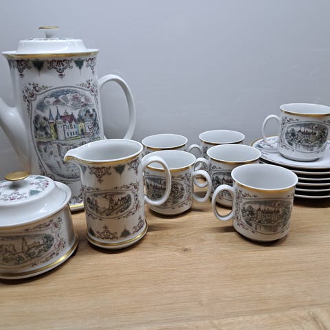 Kaunis ja hyväkuntoinen, Tšekkoslovakiassa valmistettu vintage-kahvikalusto.
