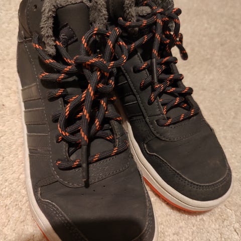 Adidaksen kengät, koko 35. Käytetty kuukauden ajan koulussa.