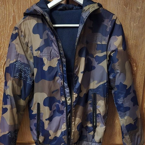 Kuvan takki, koko 158, paksu ja lämmin. Pientä käytön jälkeä näkyy muuten hyvässä kunnossa ja ehjä. Koirakoti.