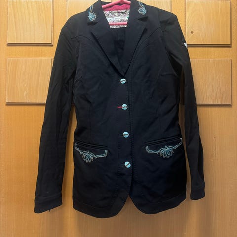 Tummansininen animo kisatakki. Todella hengittävä ja ohut kangas, sopii helteisiin. Koko XS.