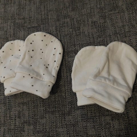 Lämpimät vihreä mustat tumput vauvalle. Pinnassa haitua, ehjät ja tahrattomat. Settiin kuuluisi myös pipo, mutta se on kadonnut.