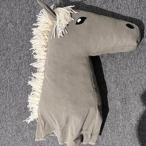 Itse tehty keppihevosen pää. Tähän kun lisää kepin niin hyvä tulee. Hiukset tehty villalangasta.