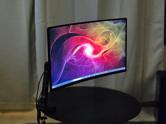 Näytössä mustalla/todella tummalla taustalla 1 pikseli on punainen vasemmassa alareunassa. (Näkyy kuvassa)